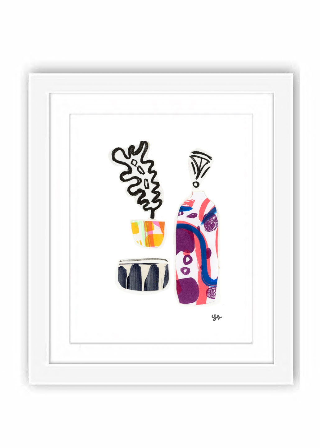 This is a print of a mixed-media collage. It's inspired by vessels in my apartment.