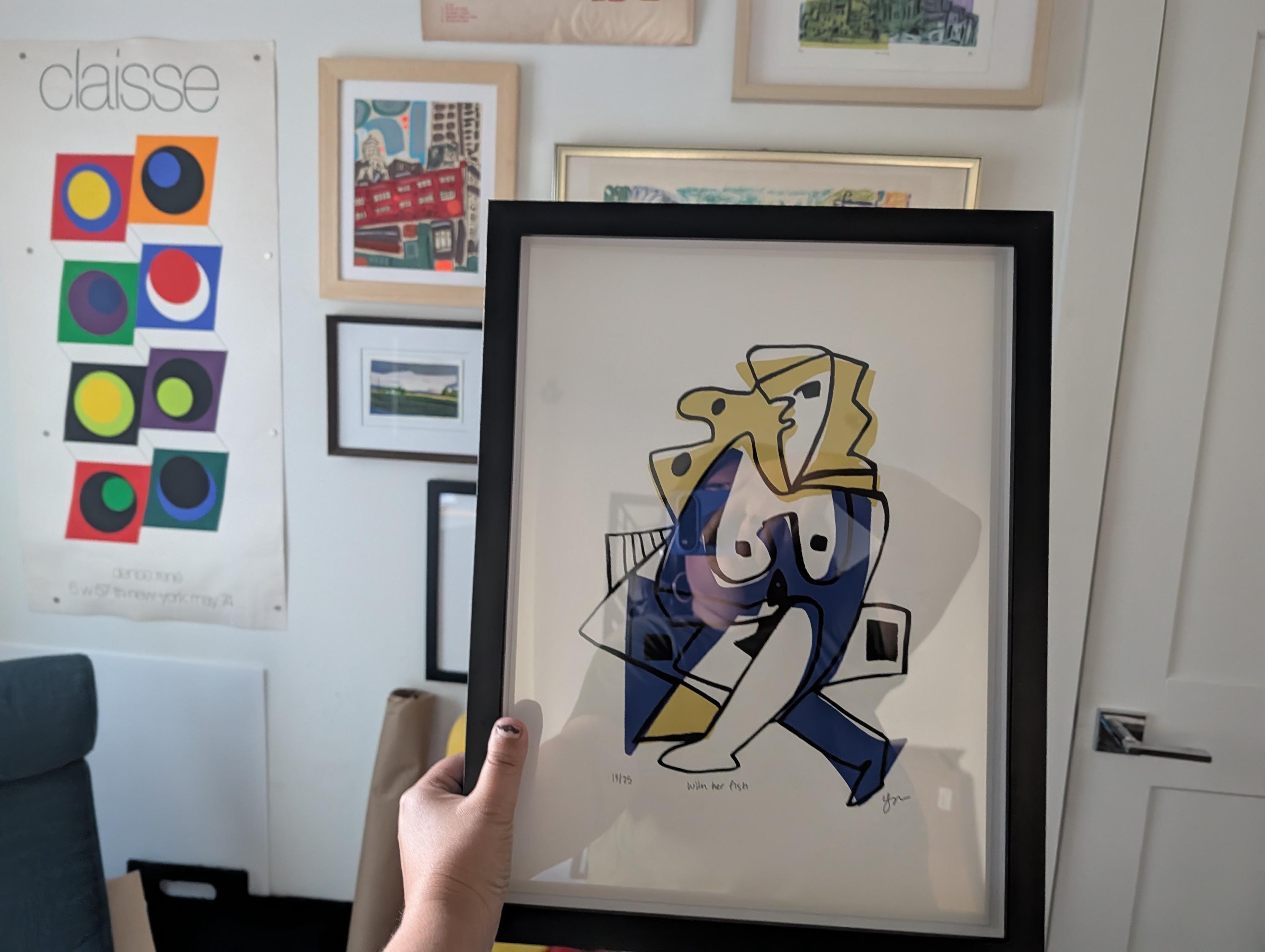 Framing is custom for each print so the sizing is slightly different from above but in general, fits the same principle of print size to image ratio.