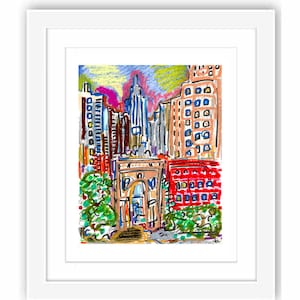This is a print of mixed media painting of Coney Island, looking back at the park at dusk from the beach. I used Japanese paints and rice paper on watercolor paper.
